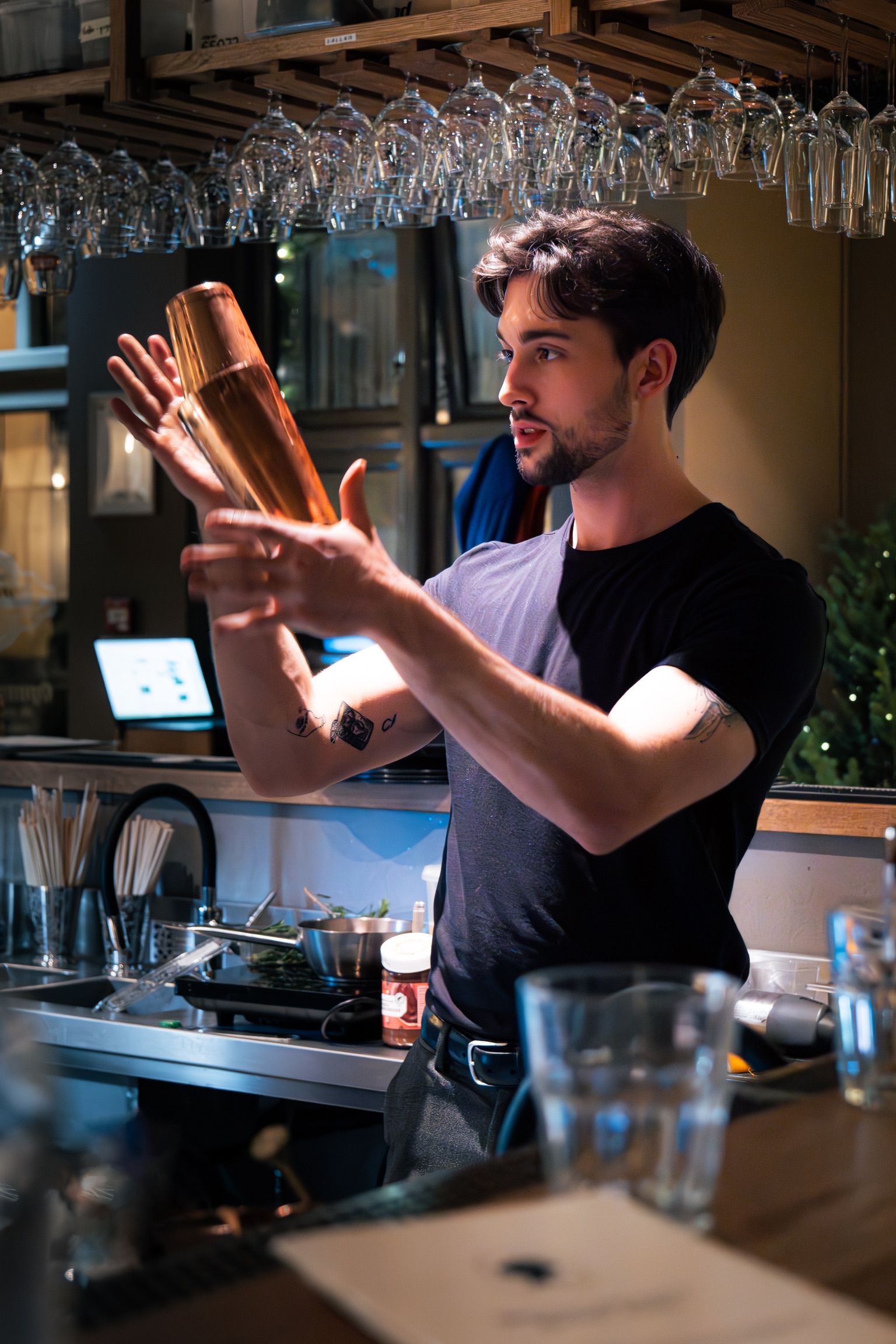 Komdu í hádegismat, þar sem við leggjum áherslu á skjóta þjónustu og afslappað andrúmsloft, eða á kvöldin, þegar við dimmum ljósin, hækkum aðeins tónlistina og setjum tónin fyrir fullkominn stað til að hitta vini og vandamenn í hlýlegu andrúmslofti — bókaðu borð í dag.